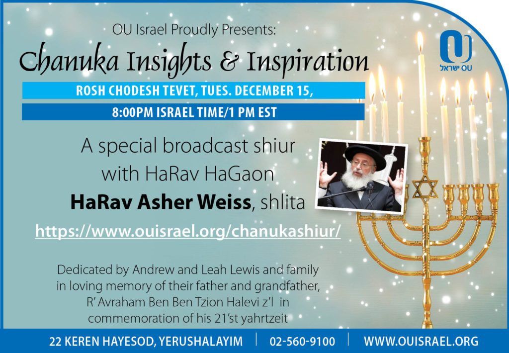 A special broadcast shiur with HaRav HaGaon HaRav Asher Weiss, shlita