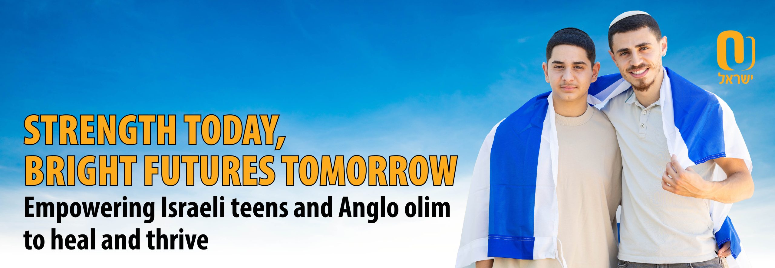 From the frontlines of war to the challenges of immigration, Israel’s at-risk teens and Anglo olim need us more than ever. Your gift will give them the support, Jewish wisdom and love to heal, grow, and thrive in Israel.