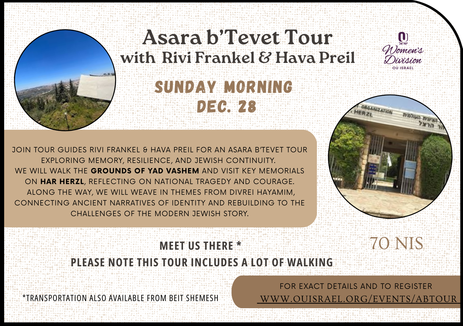 Meeting at 8:30 AM for the bus that will be leaving from BIG Fashion Mall Beit Shemesh
