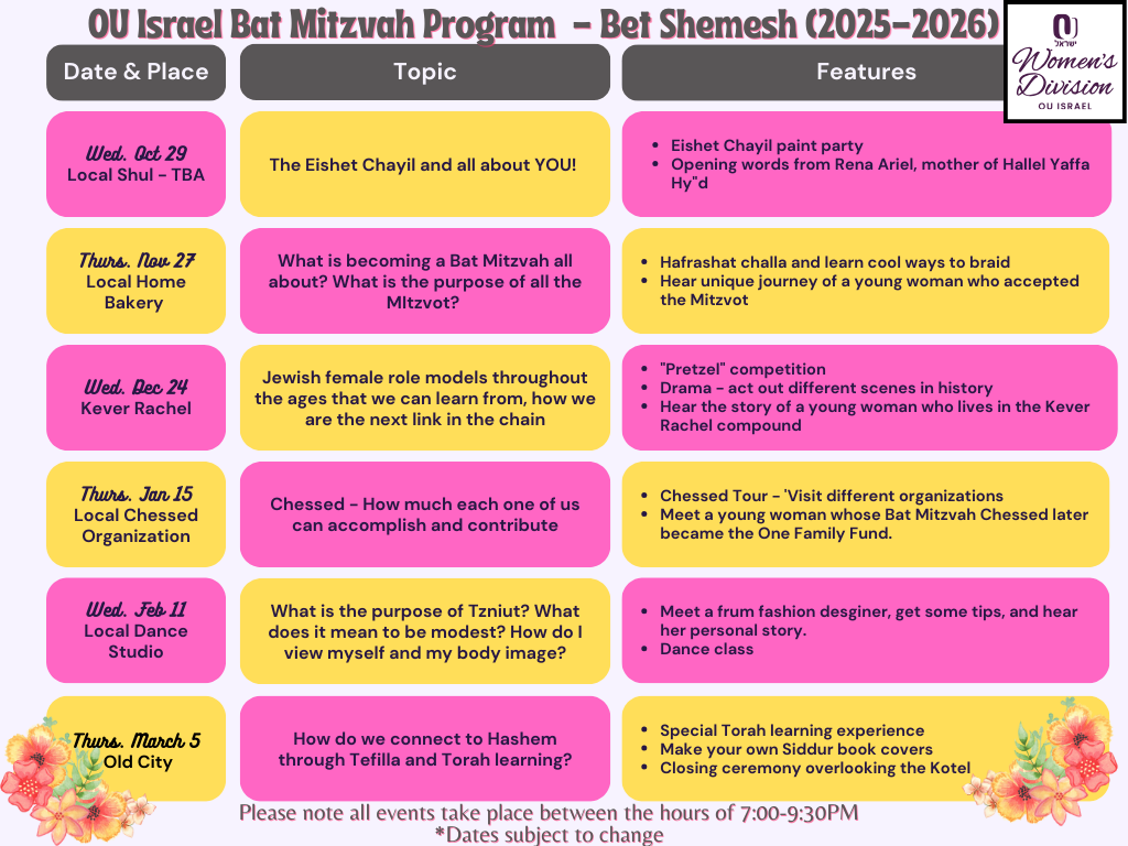 Bet Shemesh Bat Mitzvah program (2025-2026)