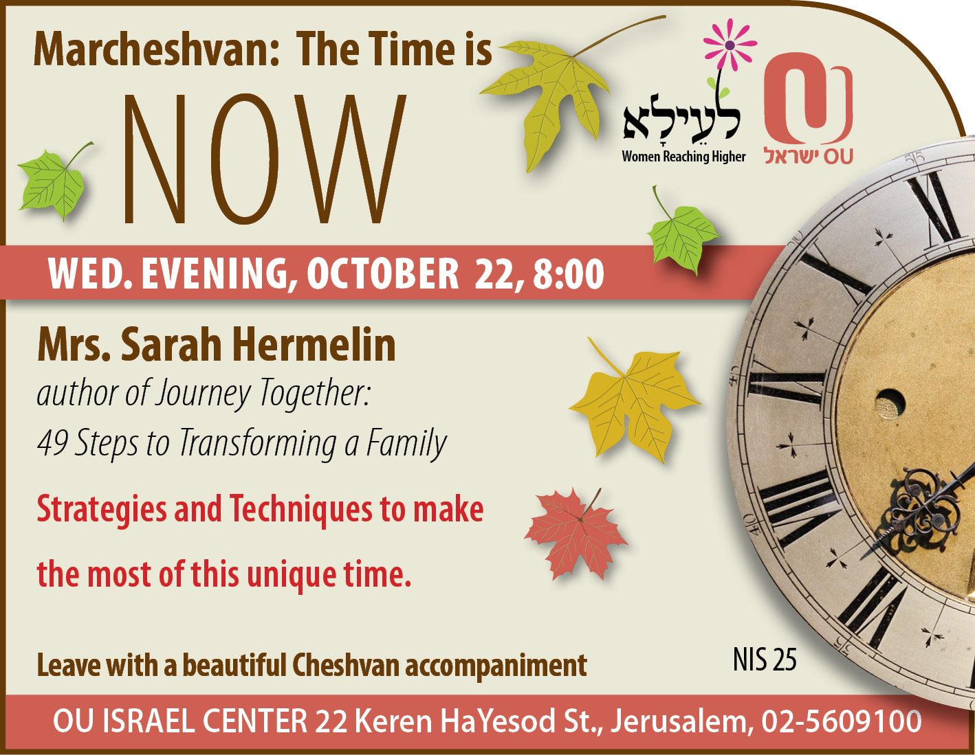 Wed. Evening, October 22, 8:00 at the OU Israel Center