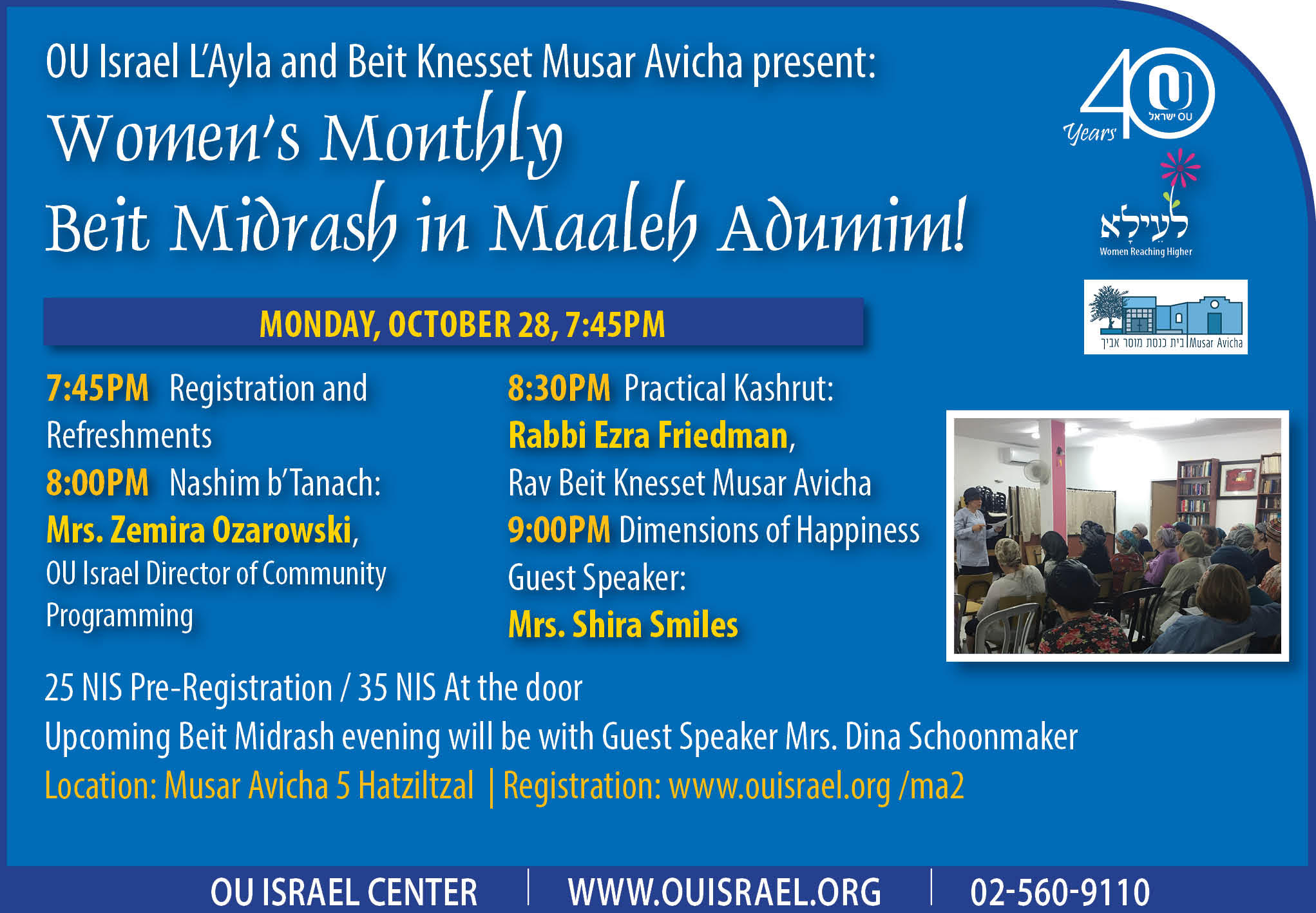 Location: Musar Avicha 5 Hatziltzal | Registration: www.ouisrael.org /ma2