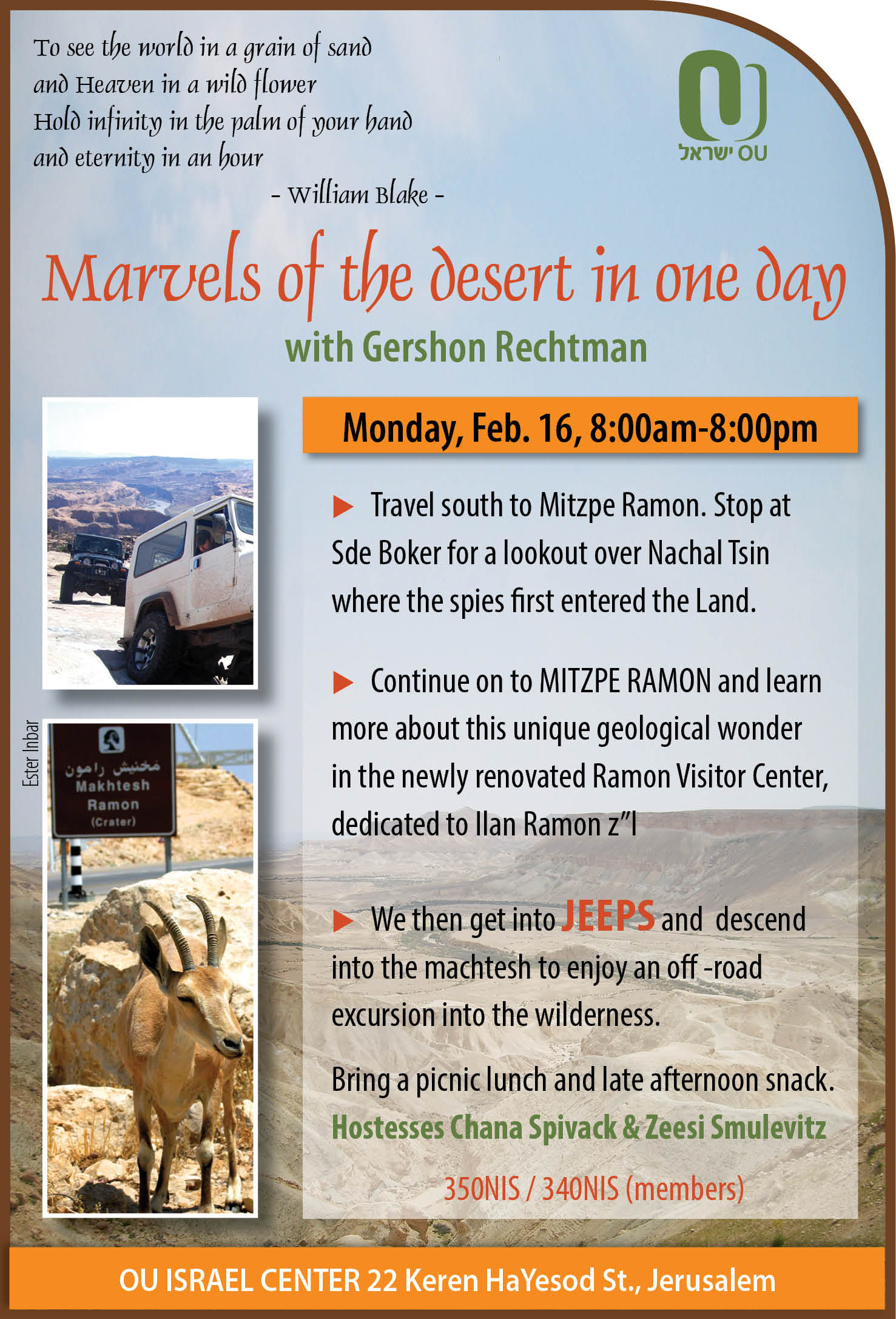 We then get into jeeps and descend into the machtesh to enjoy an off -road excursion into the wilderness..