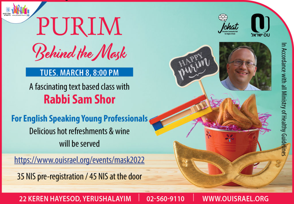 Purim Behind the Mask-A fascinating text based class For Young Professionals with Rabbi Sam Shor