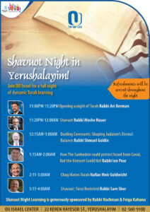 Join OU Israel for an inspirational night of dynamic Torah classes on Shavuot night.