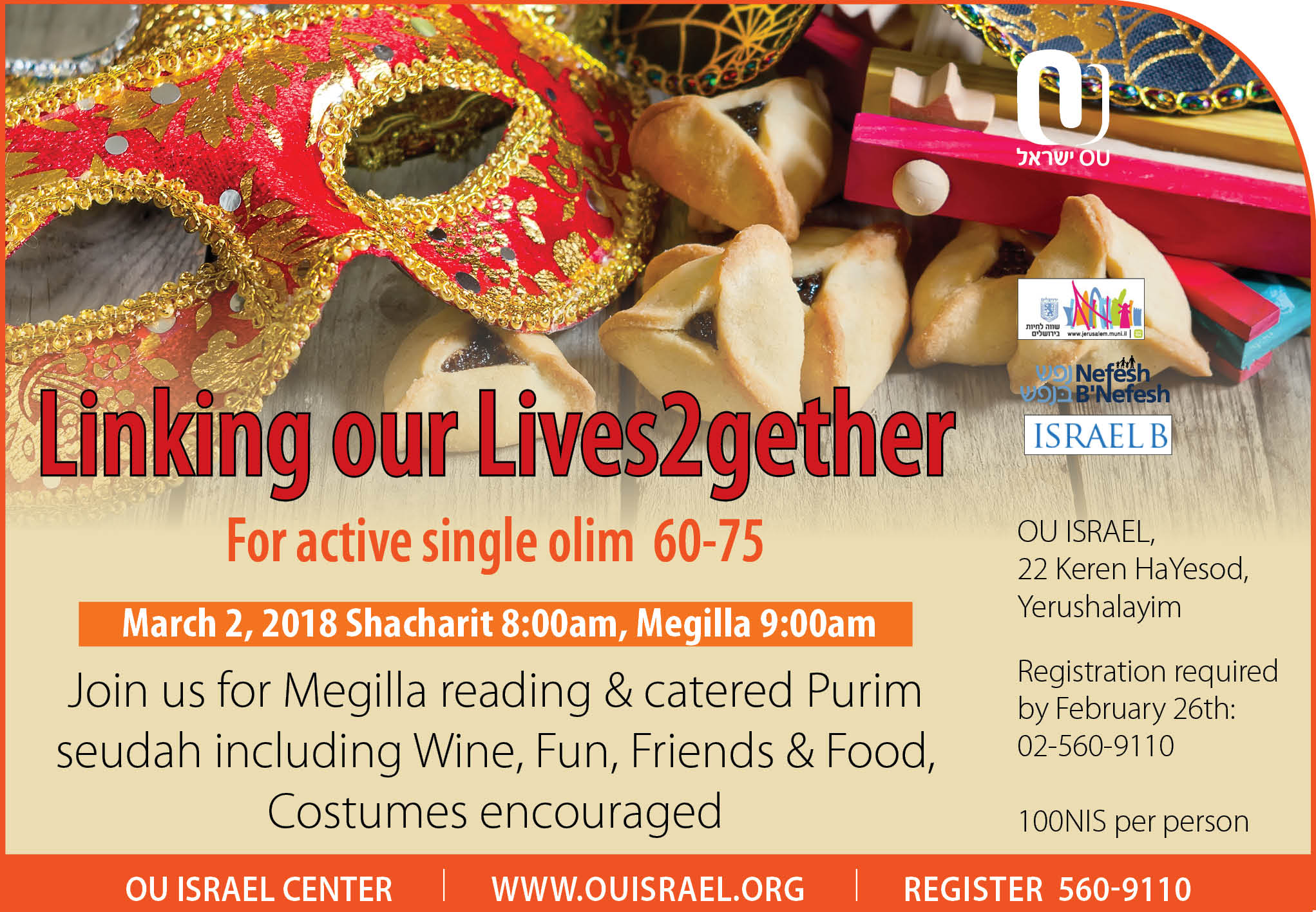 Purim Seudah For active single olim 60-75