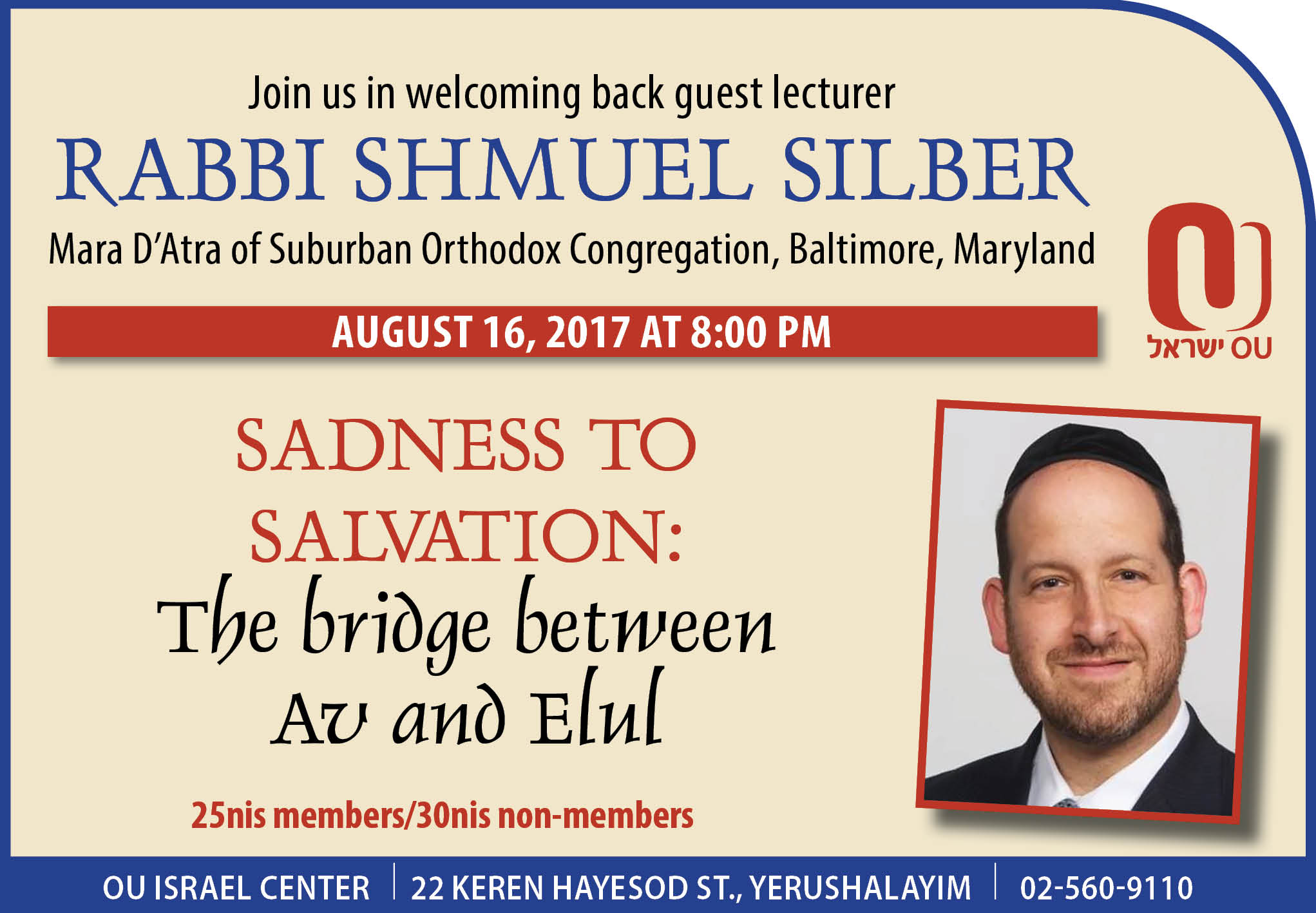 Rabbi Shmuel Silber :Sadness to Salvation: The bridge between Av and Elul