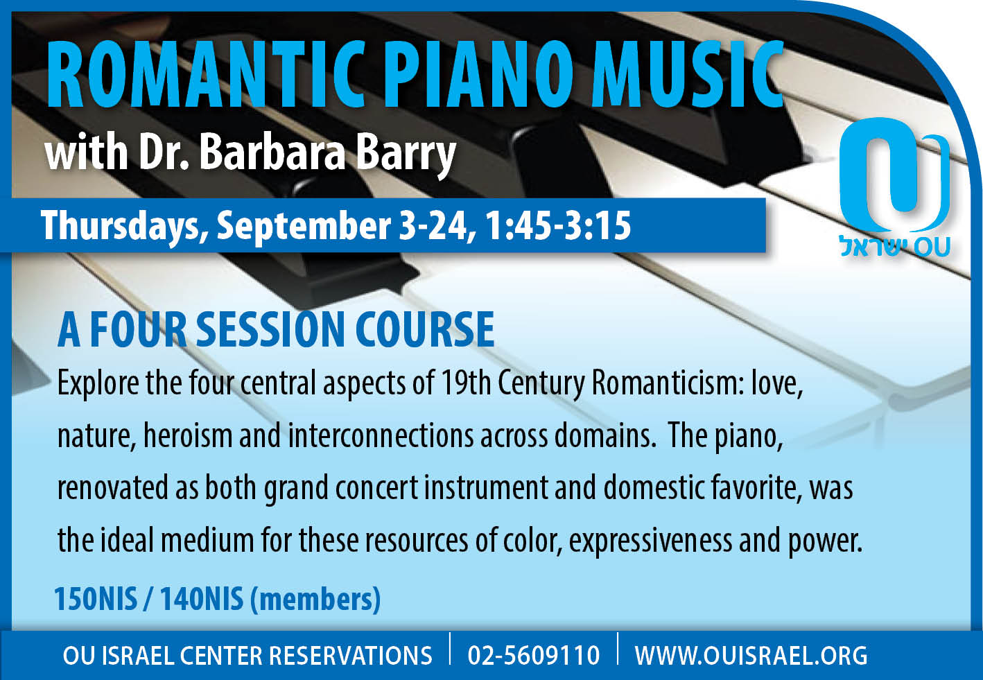Explore the four central aspects of 19th Century Romanticism: love, nature, heroism and interconnections across domains. The paino, renovated as both grand concert instrument and domestic favorite, was the ideal medium for these resources of color, expressiveness and power.