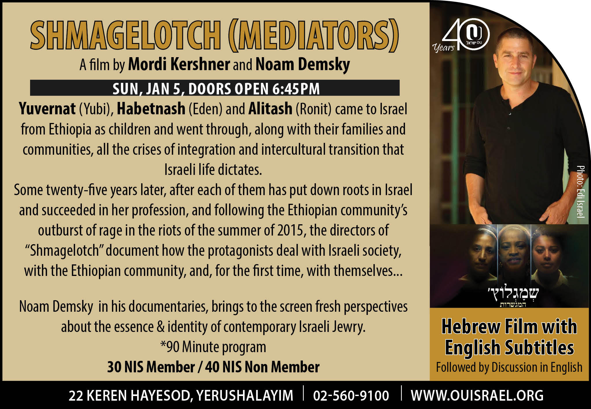 Some twenty-five years later, after each of them has put down roots in Israel and succeeded in her profession, and following the Ethiopian community’s outburst of rage in the riots of the summer of 2015, the directors of “Shmagelotch” document how the protagonists deal with Israeli society, with the Ethiopian community, and, for the first time, with themselves… — with Demsky Noam.
