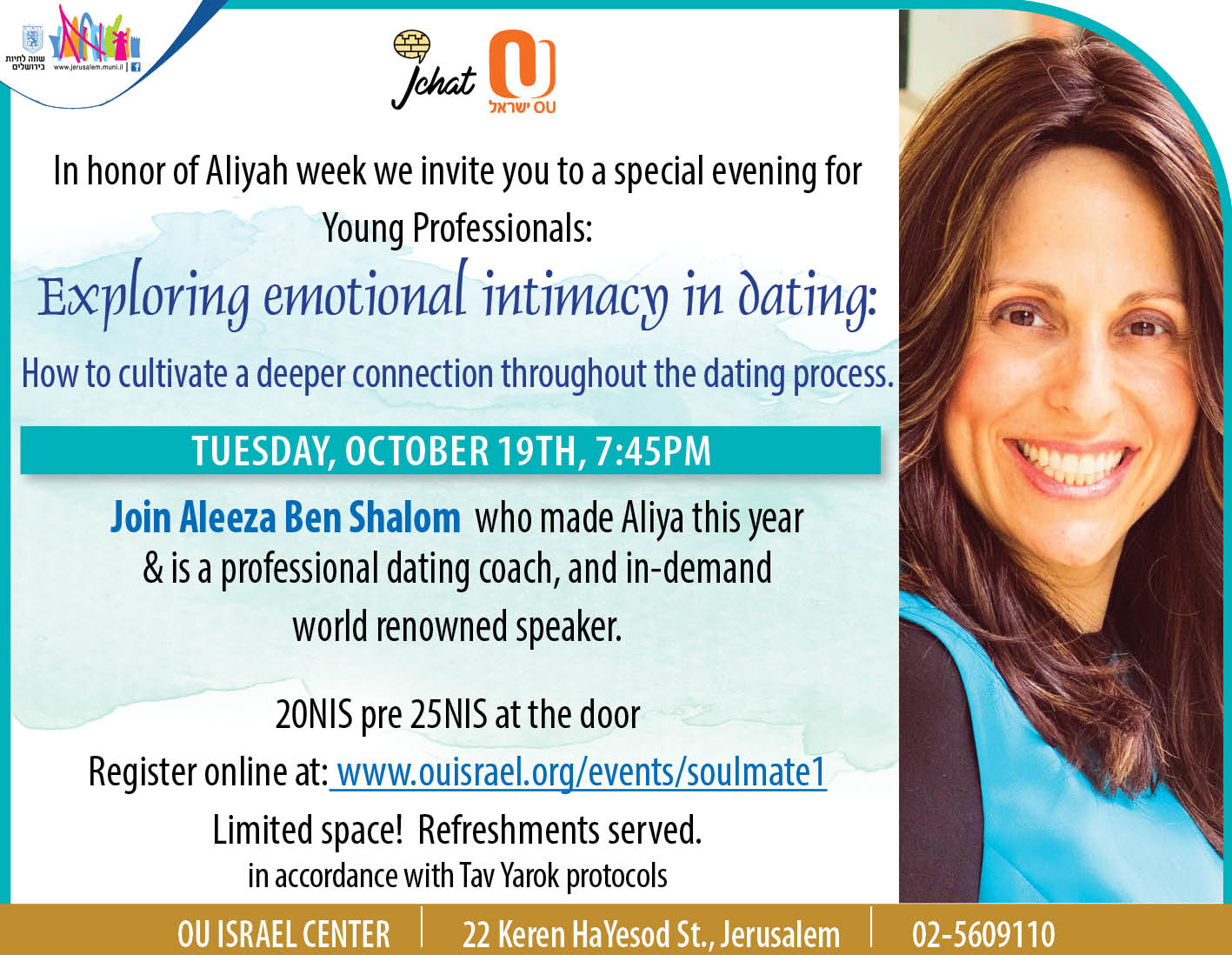Join Aleeza Ben Shalom who made Aliya this year & is a professional dating coach, and in-demand world renowned speaker.