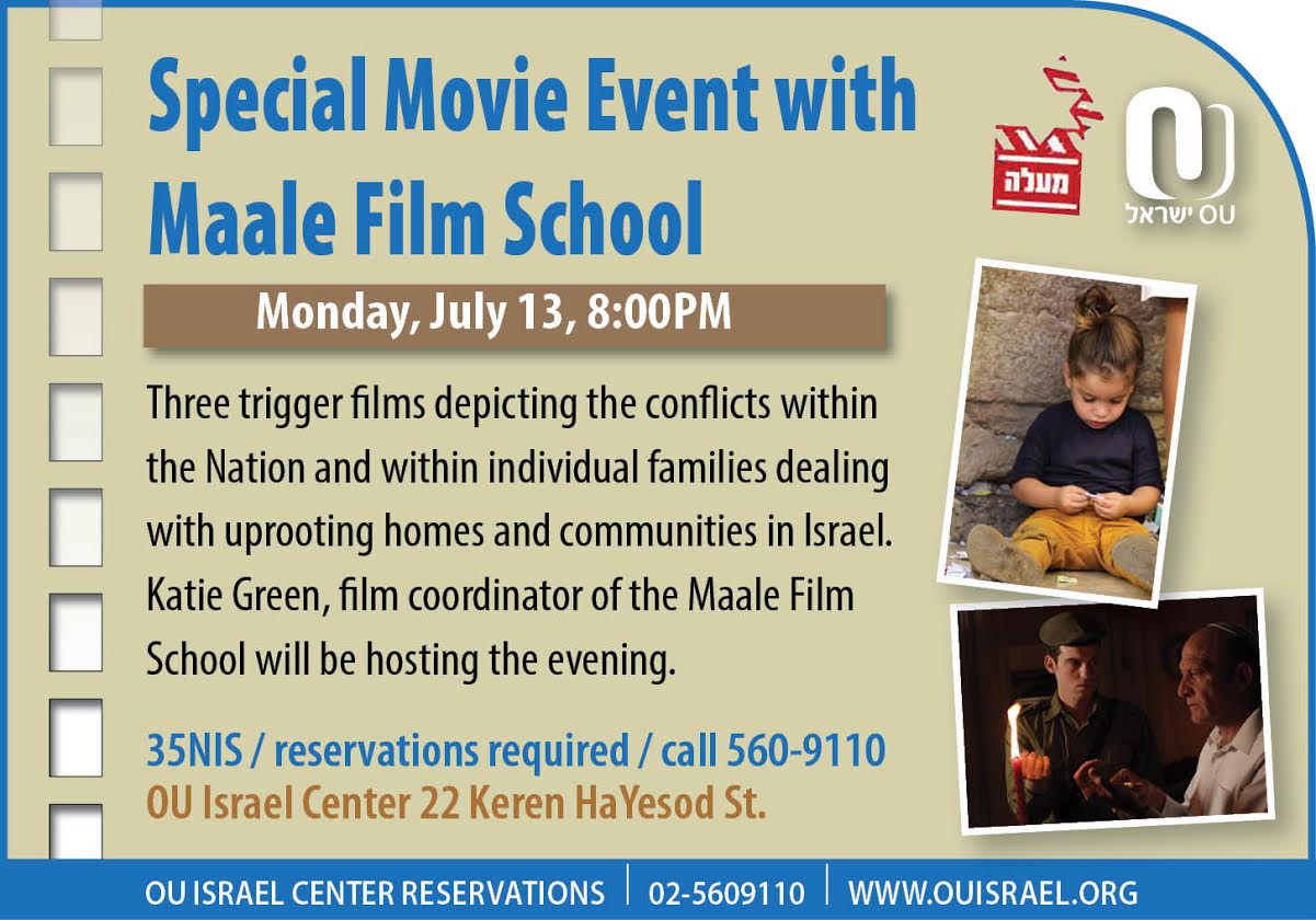 Katie Green, film coordinator of the Maale Film School will be hosting the evening.
