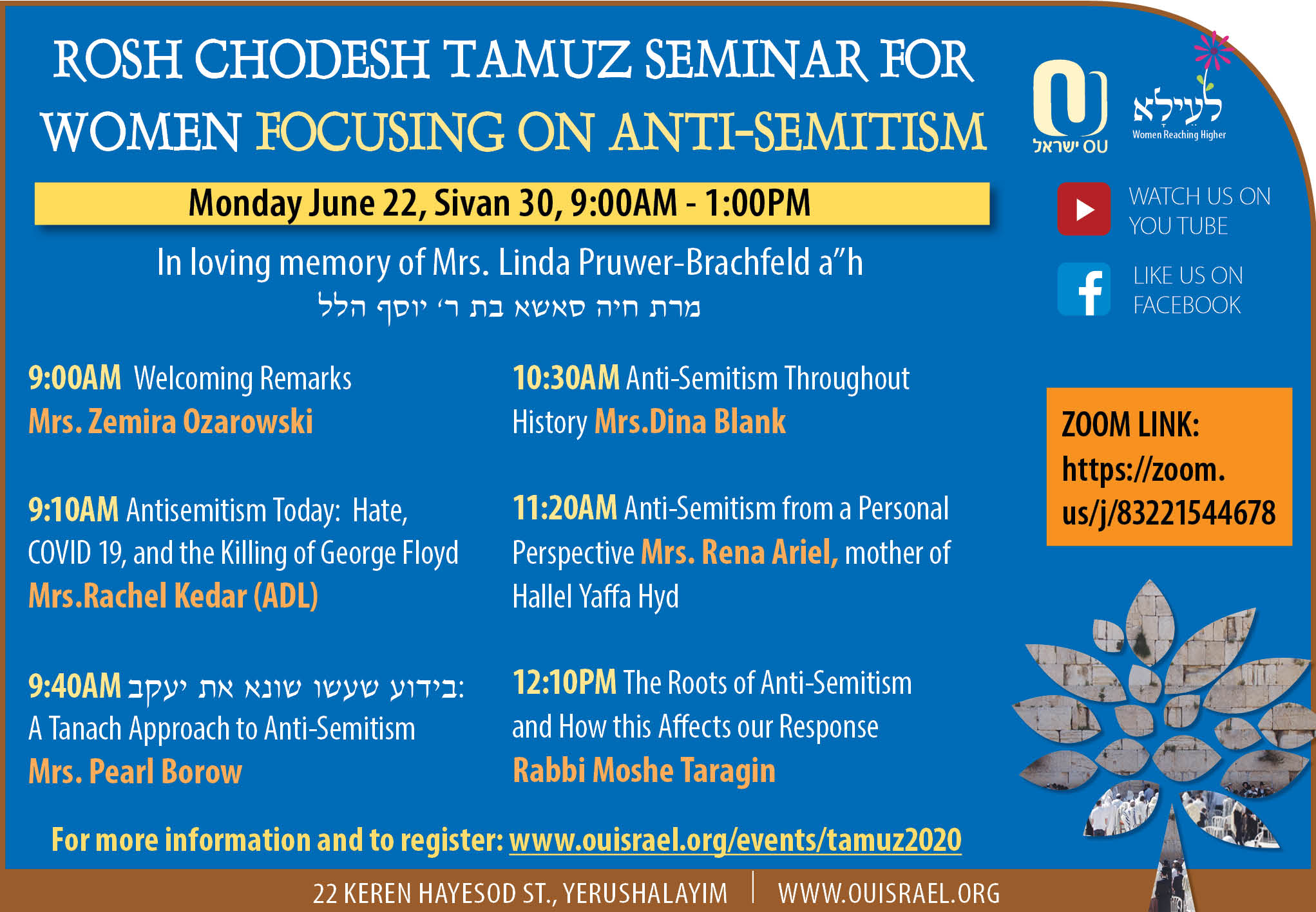 9:10AM Antisemitism Today: Hate, COVID-19 and the Killing of George Floyd Mrs.Rachel Kedar (Anti-Defamation League Educational Director)