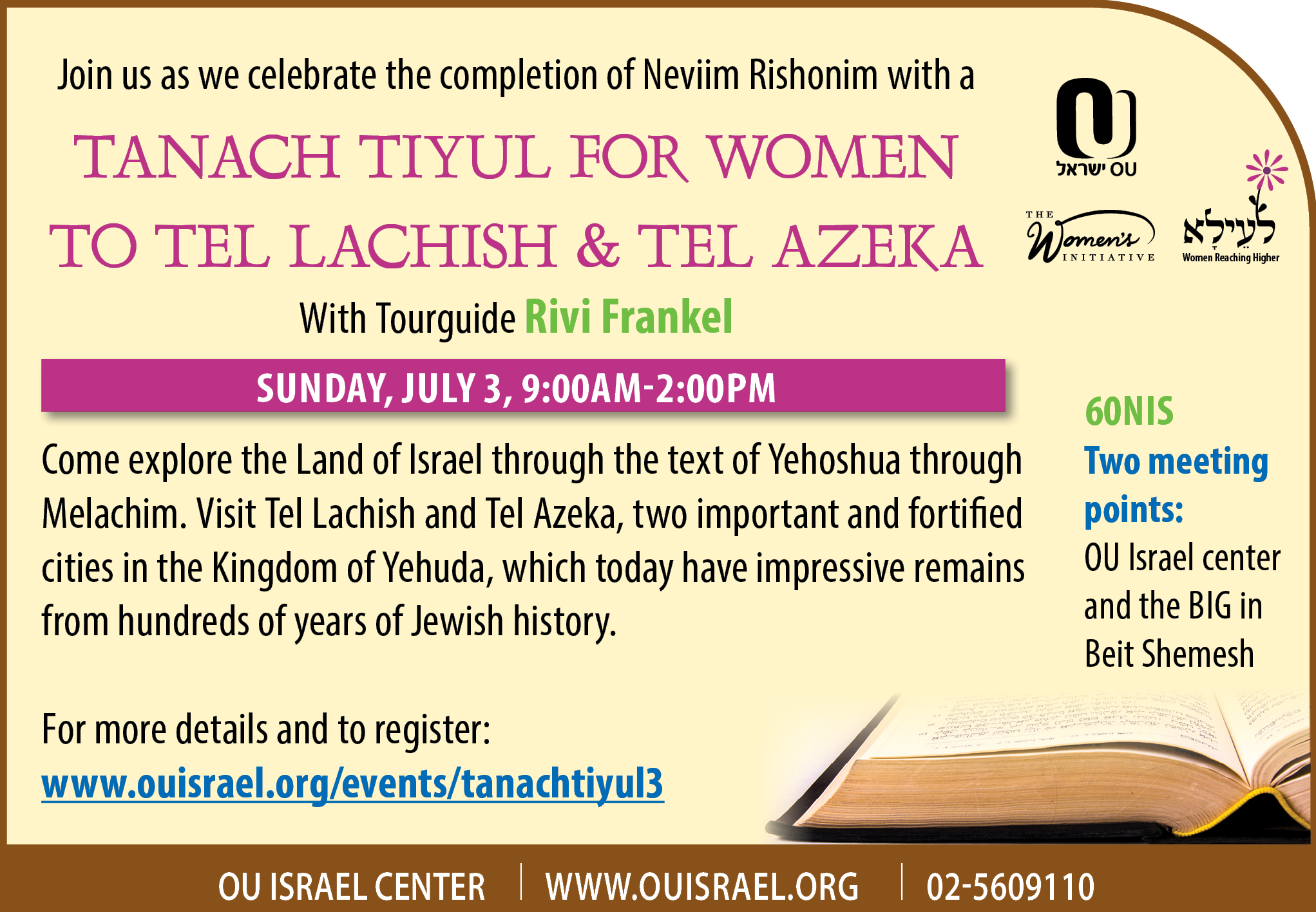 PLEASE NOTE that this Tanach tiyul has been rescheduled for Sunday July 24.