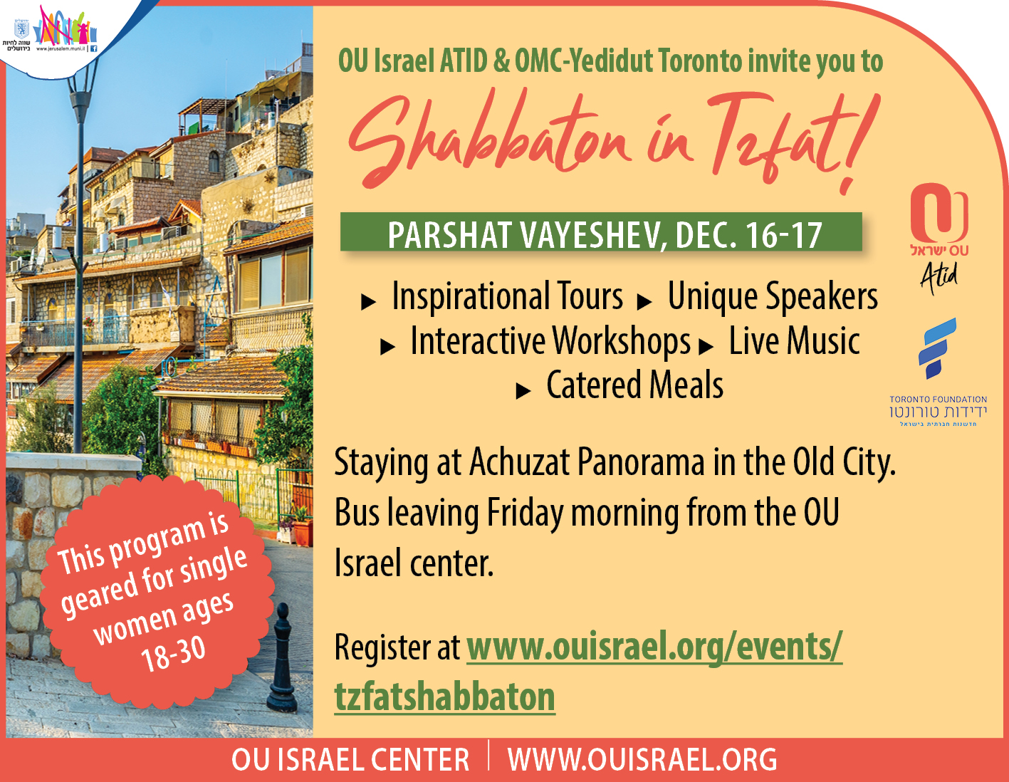 We are so excited to invite you to an incredibly special Shabbaton in Tzfat! Space is very limited so please make sure to book right away!