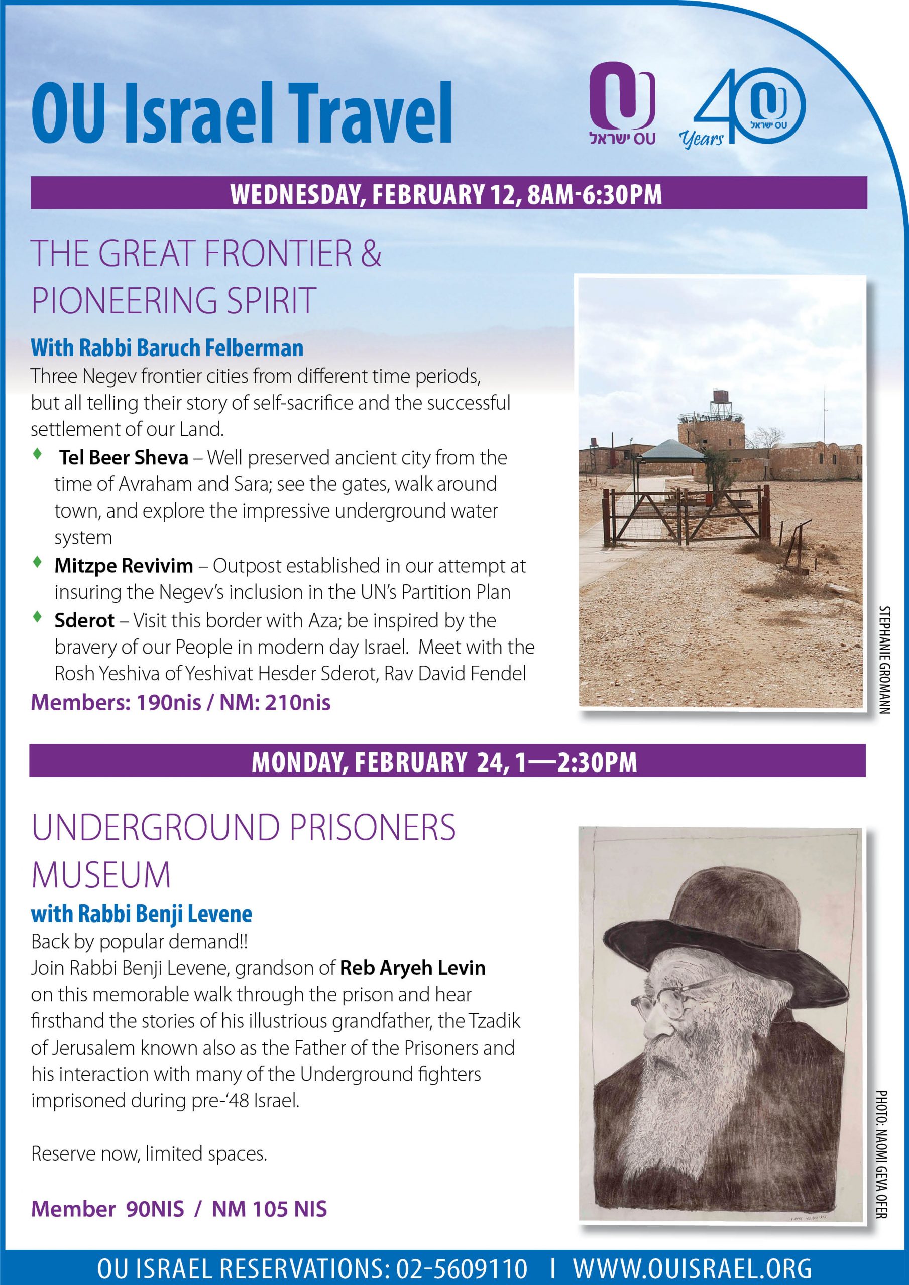 Back by popular demand!! Join Rabbi Benji Levene, grandson of Reb Aryeh Levin on this memorable walk through the prison and hear firsthand the stories of his illustrious grandfather, the Tzadik of Jerusalem known also as the Father of the Prisoners and his interaction with many of the Underground fighters imprisoned during pre-‘48 Israel.