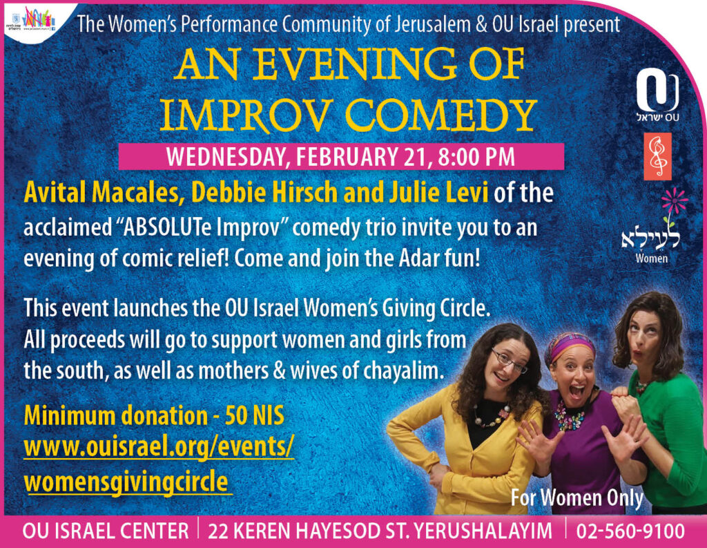 To give your minimum donation of 50NIS and thereby register for the improv event, go to: