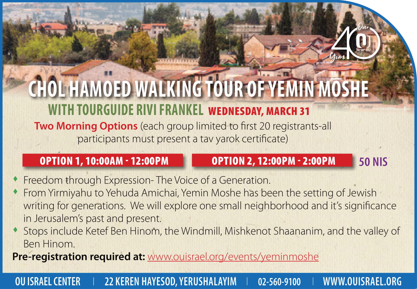 Chol Hamoed Yemin Moshe Walking Tour