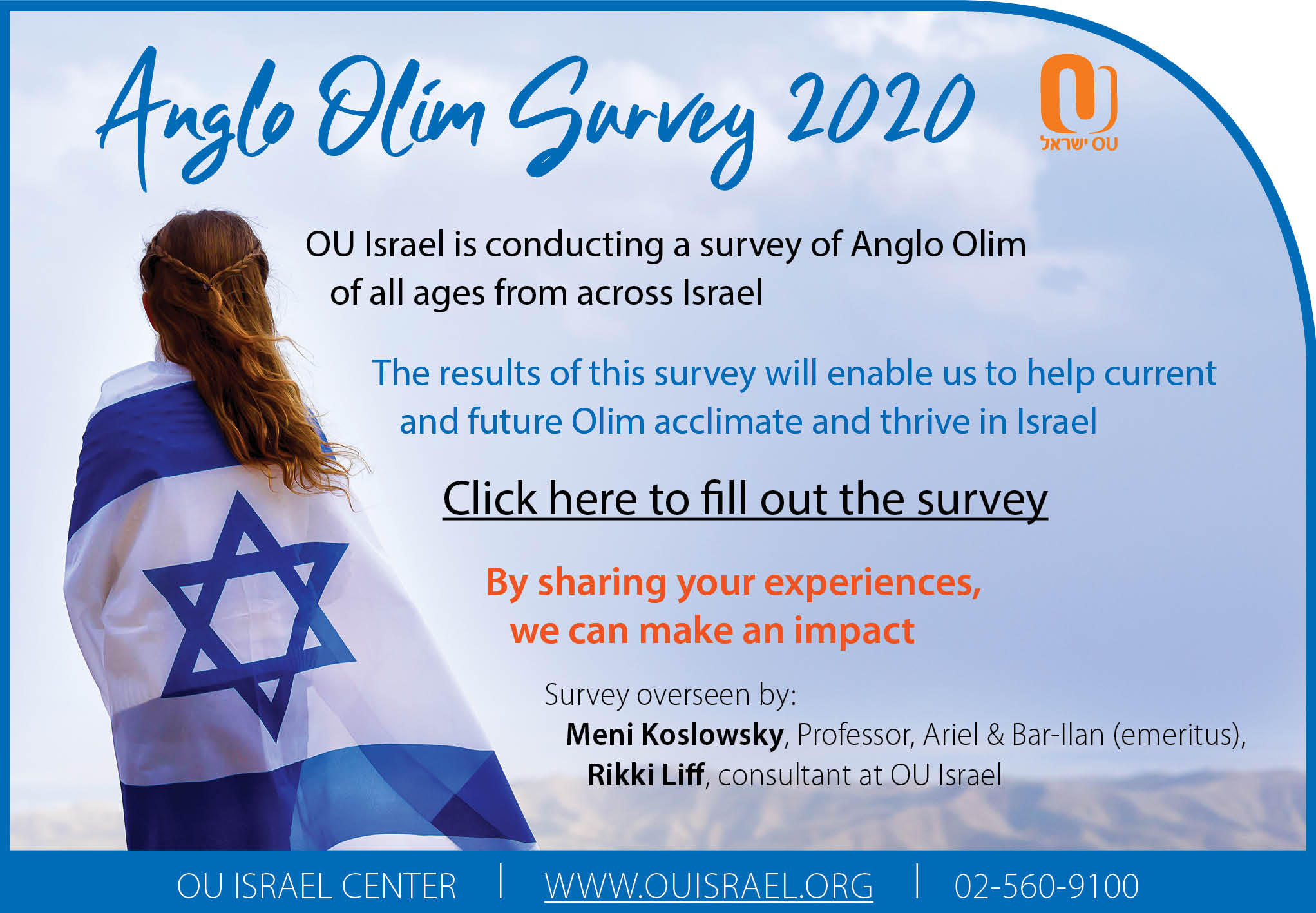 OU Israel is conducting a survey of Anglo Olim of all ages from across Israel.
