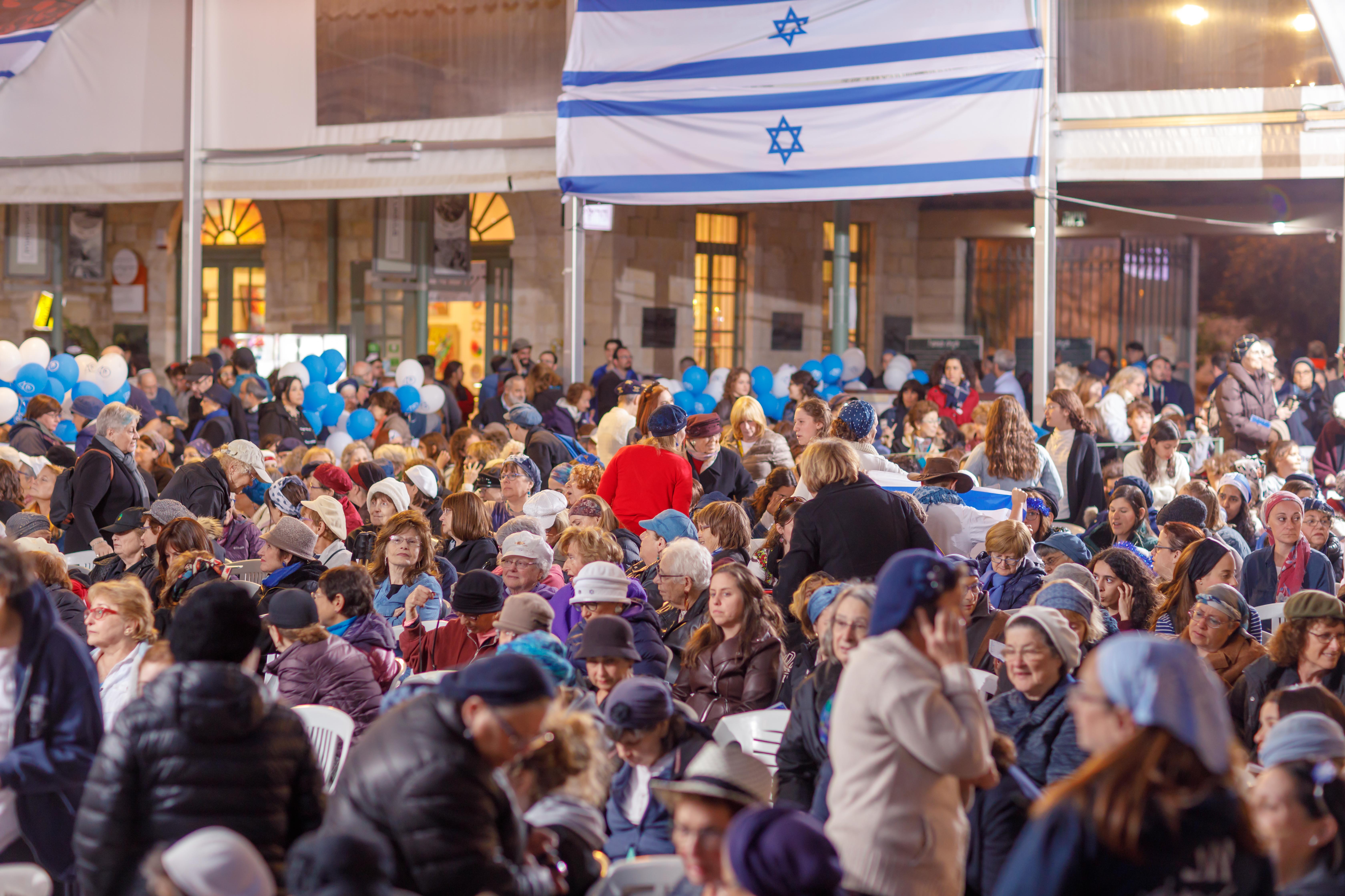 Thousands packed the First Station in Yerushalayim Wednesday evening for a special prayer and celebration organized by OU Israel in honor of Yom HaAtzmaut and OU Israel’s 40th anniversary. Most participants were recent immigrants from North America, with many saying it was their first time celebrating Yom HaAtzmaut in Israel.