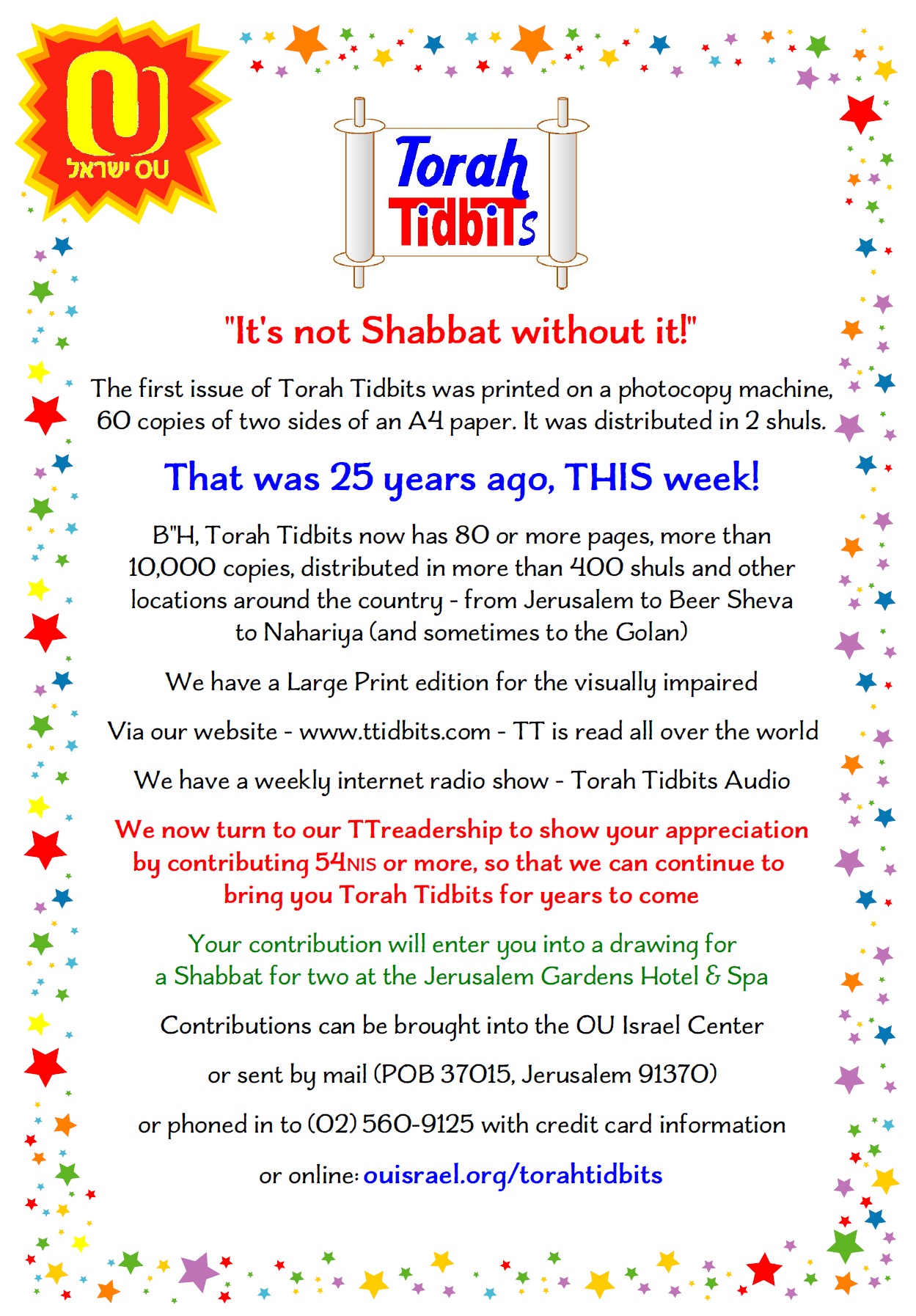 To contribute online to Torah Tidbits in honor of the 25 year celebration please click on the image below.