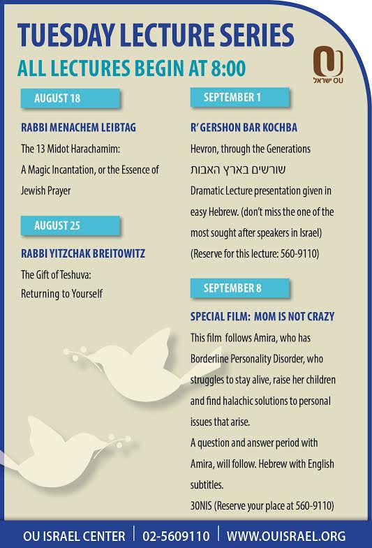 Tuesday Lecture Series at the OU Israel Center.