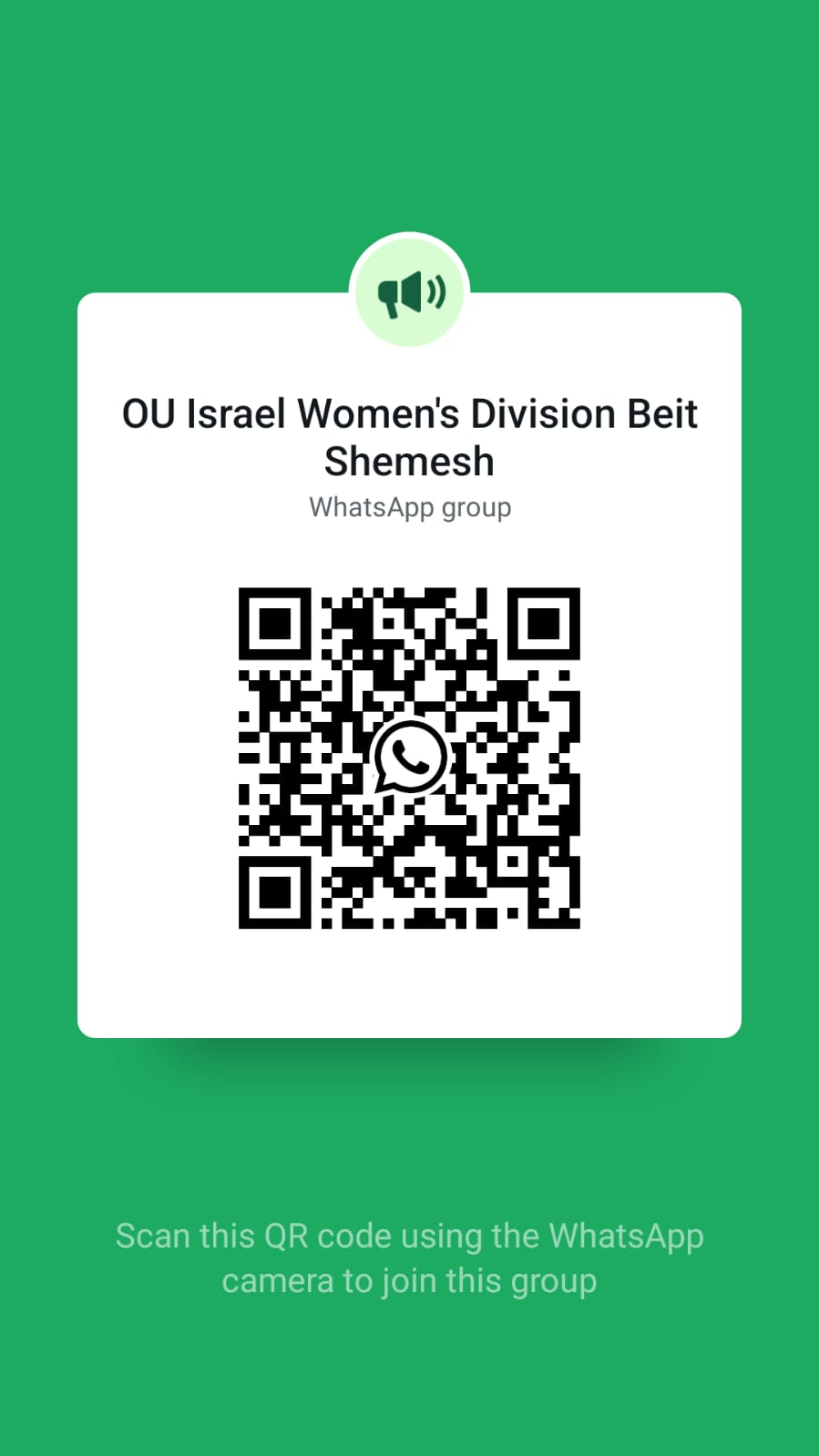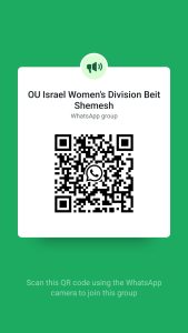 To join our Beit Shemesh WhatsApp Community click here or scan below! To join our Beit Shemesh email list, email: womens.division@ouisrael.org